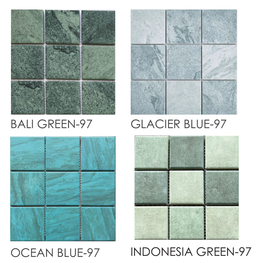 | OCEAN GREEN-97 | AQUA PORCELAIN COLOR MOSAIC OCEAN GREEN STONE 97X97MM | |