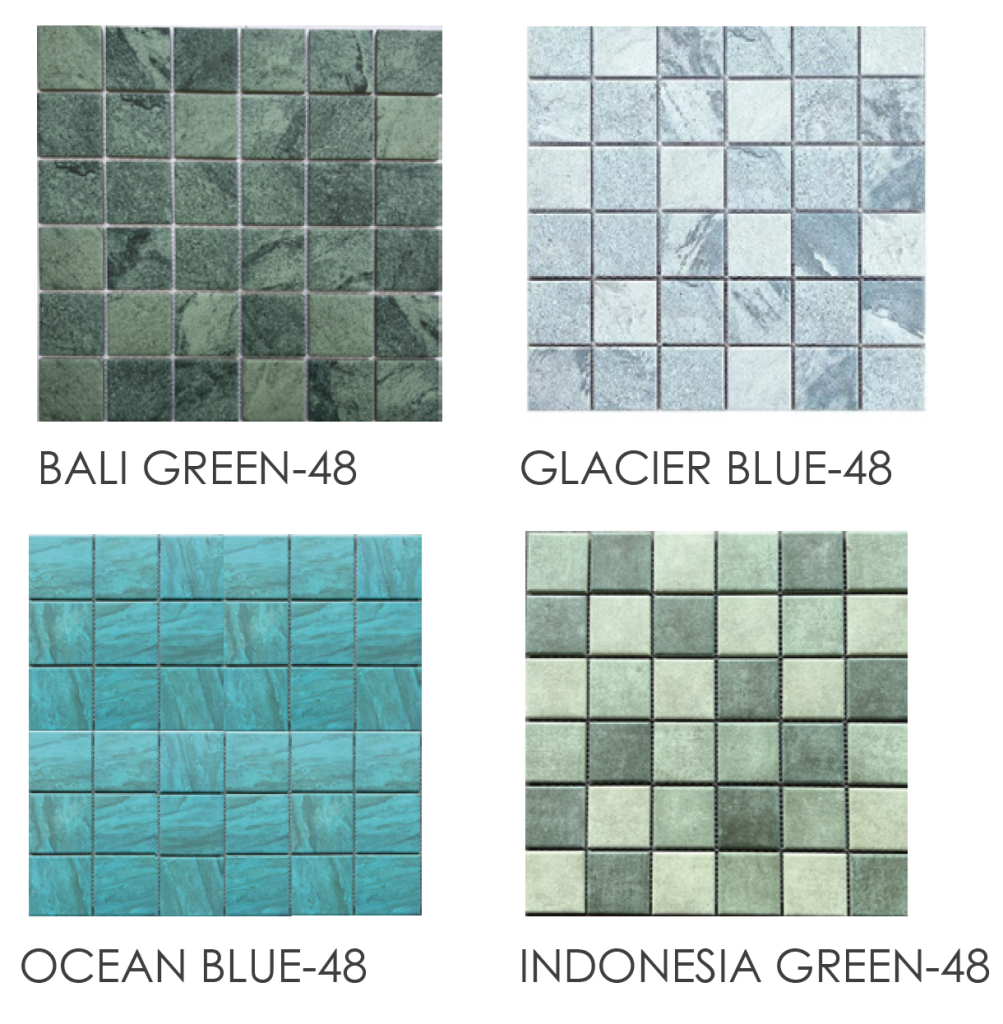 | OCEAN GREEN-48 | AQUA PORCELAIN COLOR MOSAIC OCEAN GREEN STONE 48X48MM | |