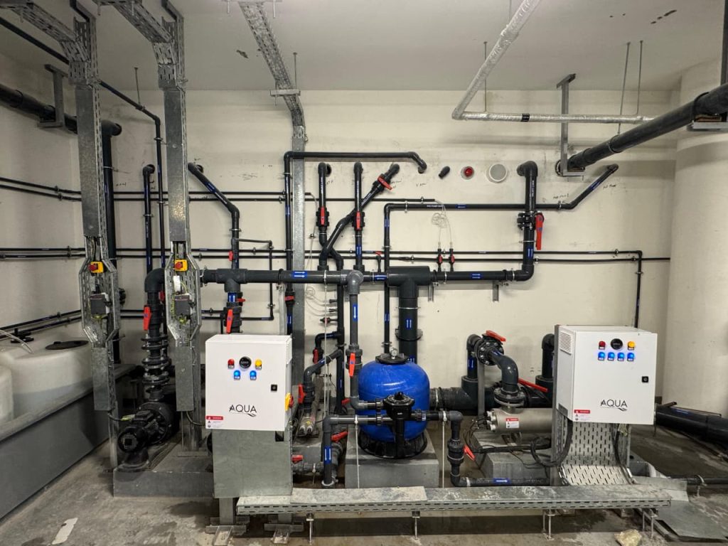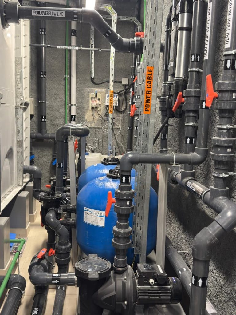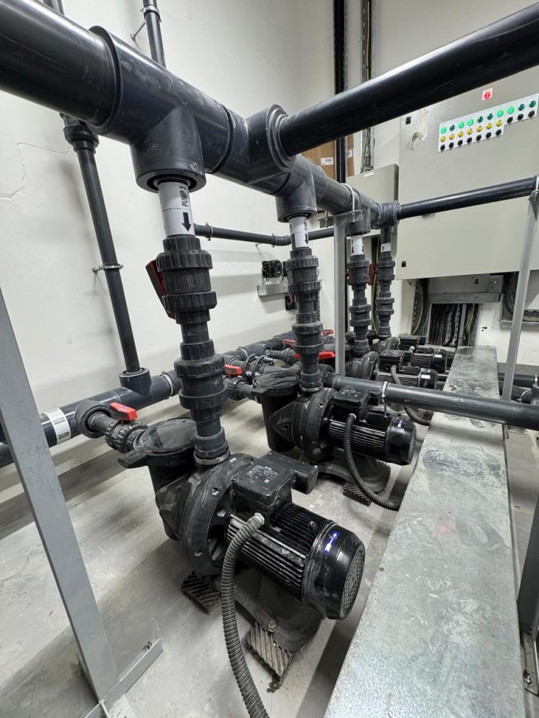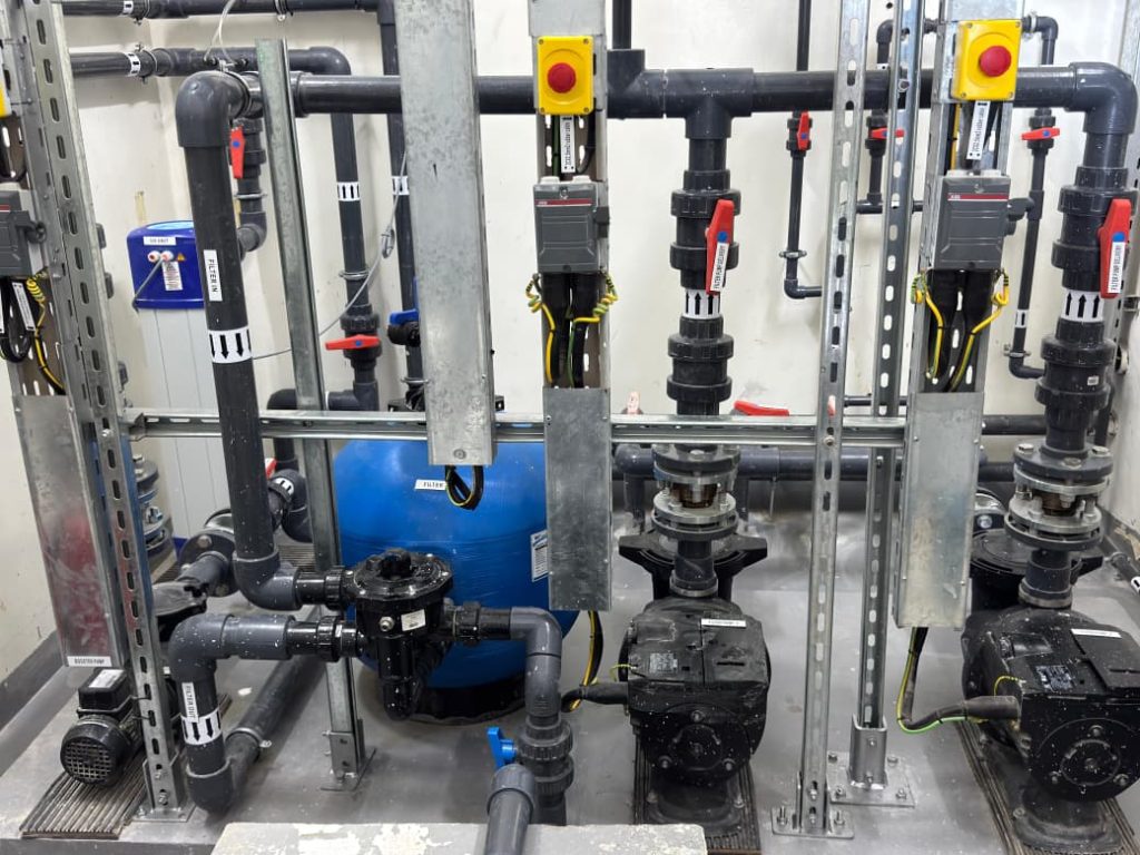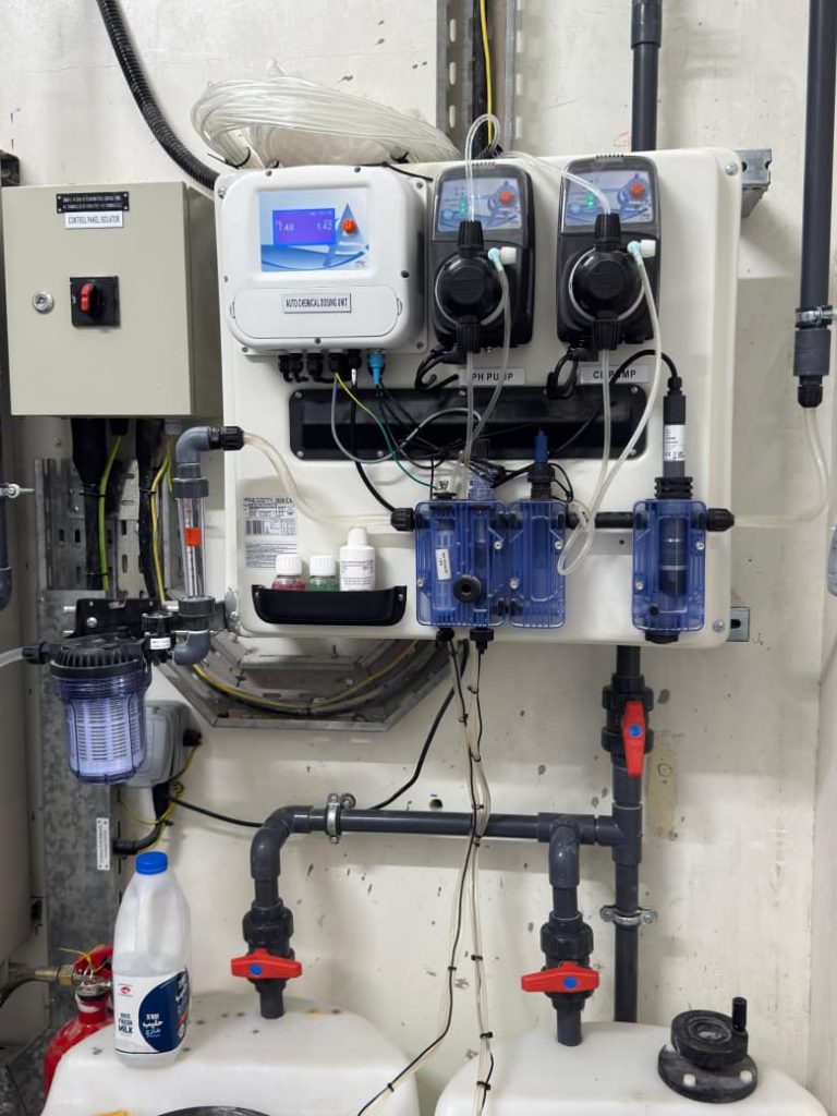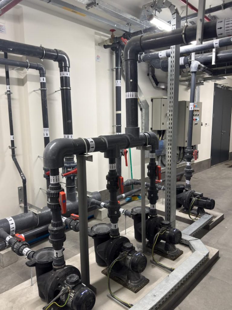 A complete swimming pool project in Sharjah, where AQUA delivered end-to-end solutions for both kids’ and main pools, including pumps, filters, dosing systems, heaters, lights, and transformers, ensuring efficient and reliable pool operation.