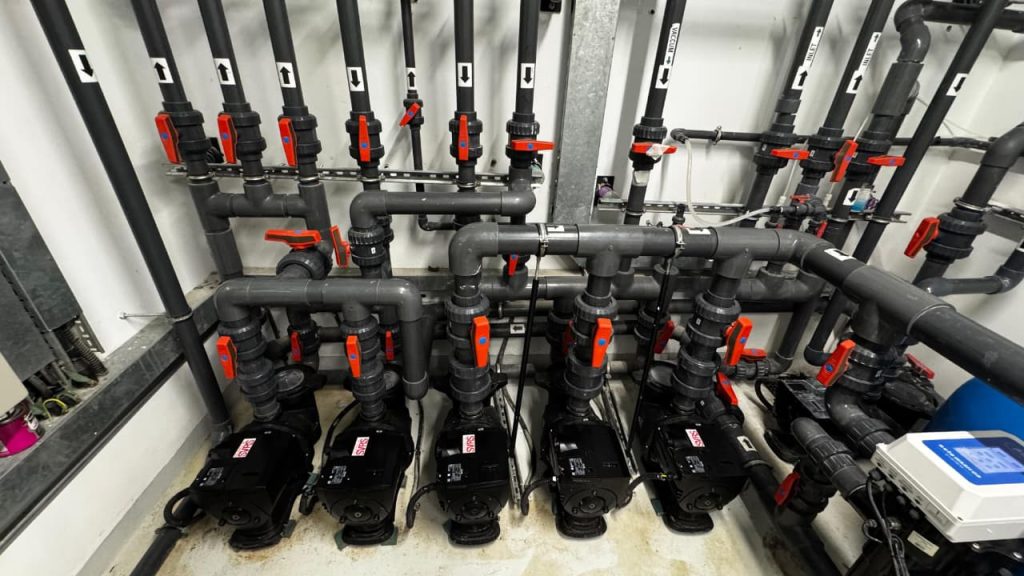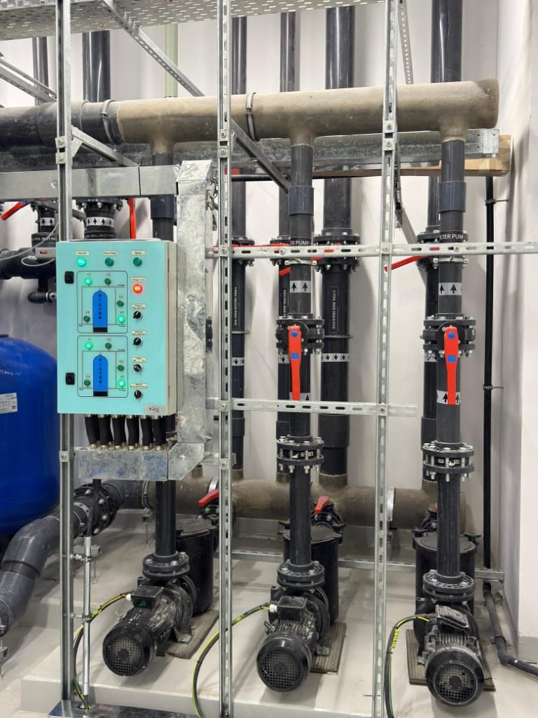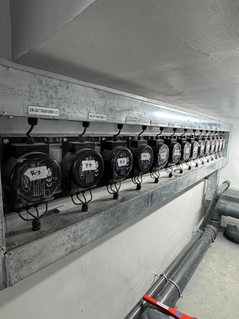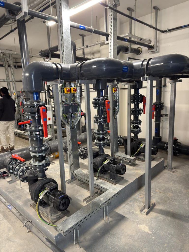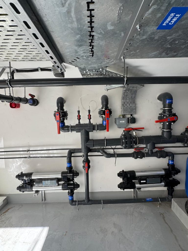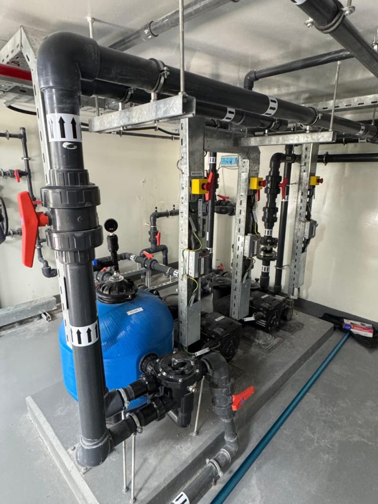 A complete swimming pool project in Sharjah, where AQUA delivered end-to-end solutions for both kids’ and main pools, including pumps, filters, dosing systems, heaters, lights, and transformers, ensuring efficient and reliable pool operation.