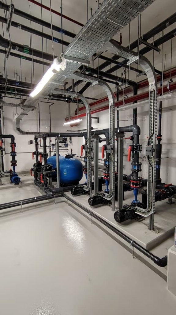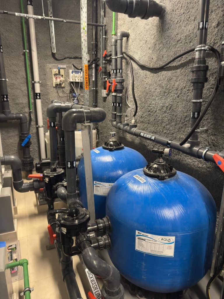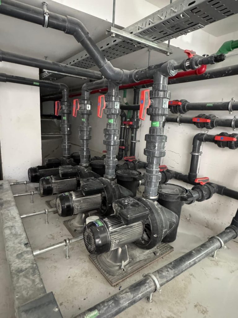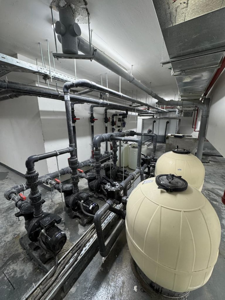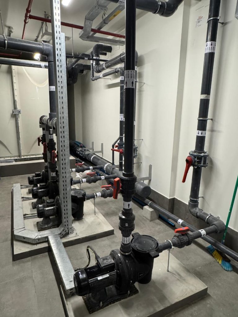 A complete pool project at Radiant Square Tower, where AQUA delivered end-to-end pool solutions including pumps, VFD pumps, filters, dosing systems, HC units, lights, transformers, auto backwash controllers, and manifold valves, ensuring efficient and reliable pool operation.