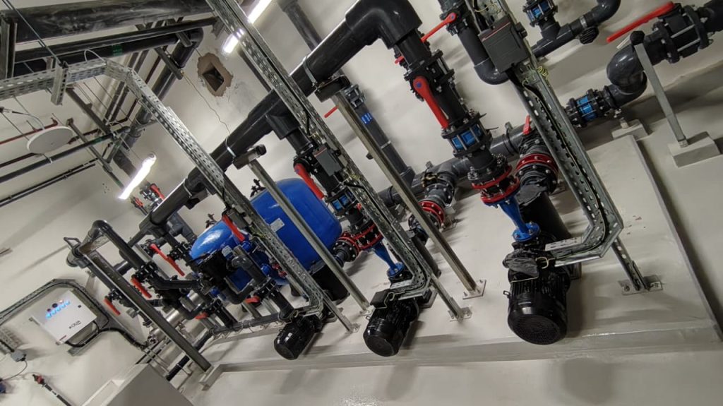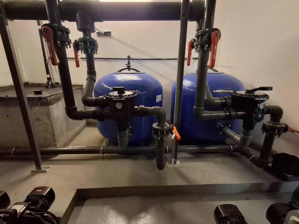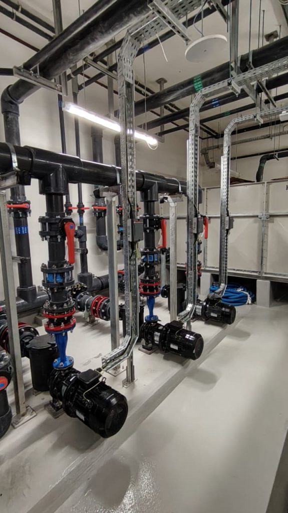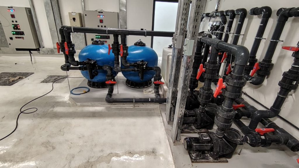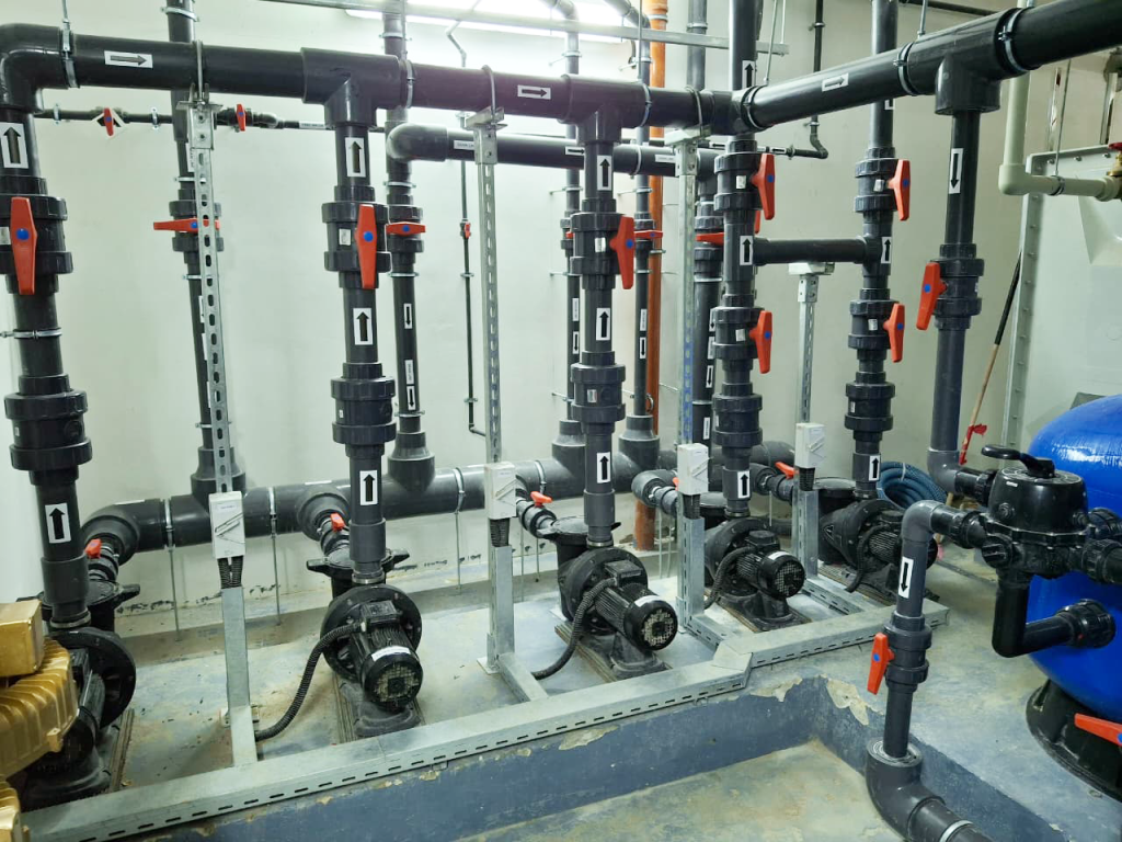 A complete pool project at Radiant Square Tower, where AQUA delivered end-to-end pool solutions including pumps, VFD pumps, filters, dosing systems, HC units, lights, transformers, auto backwash controllers, and manifold valves, ensuring efficient and reliable pool operation.