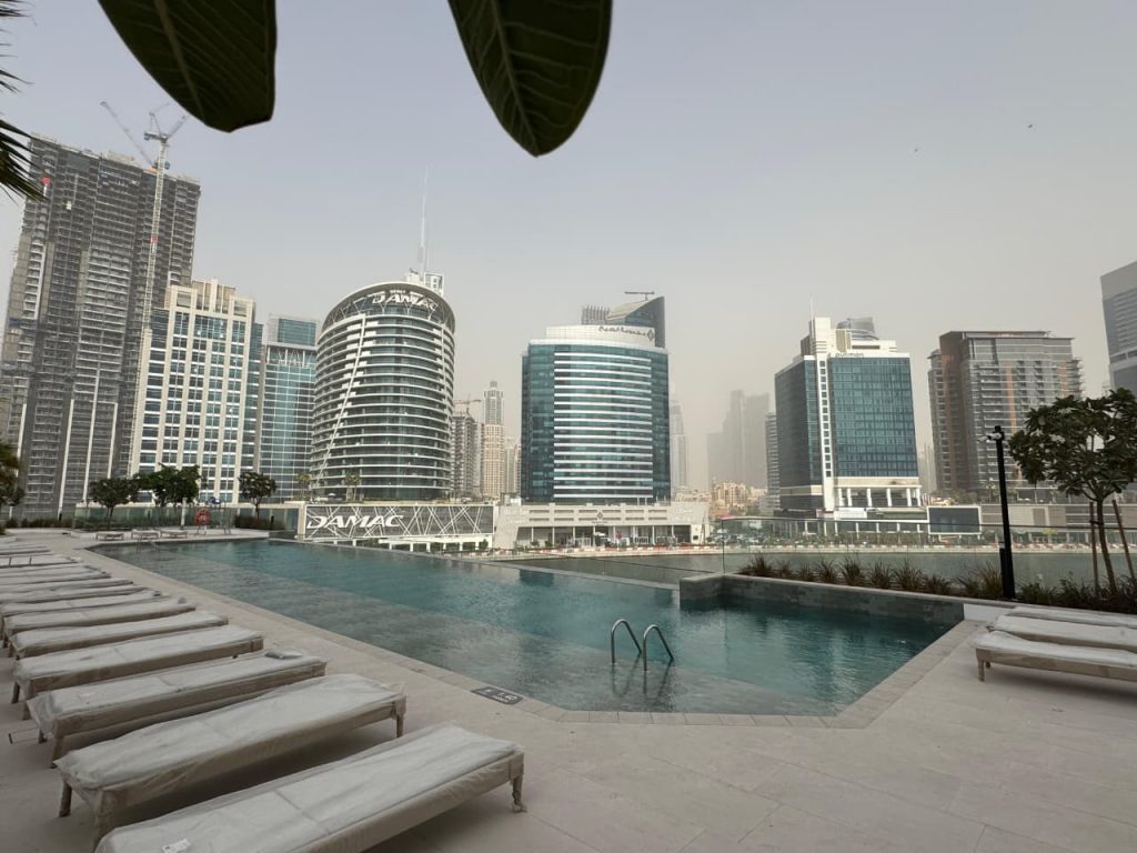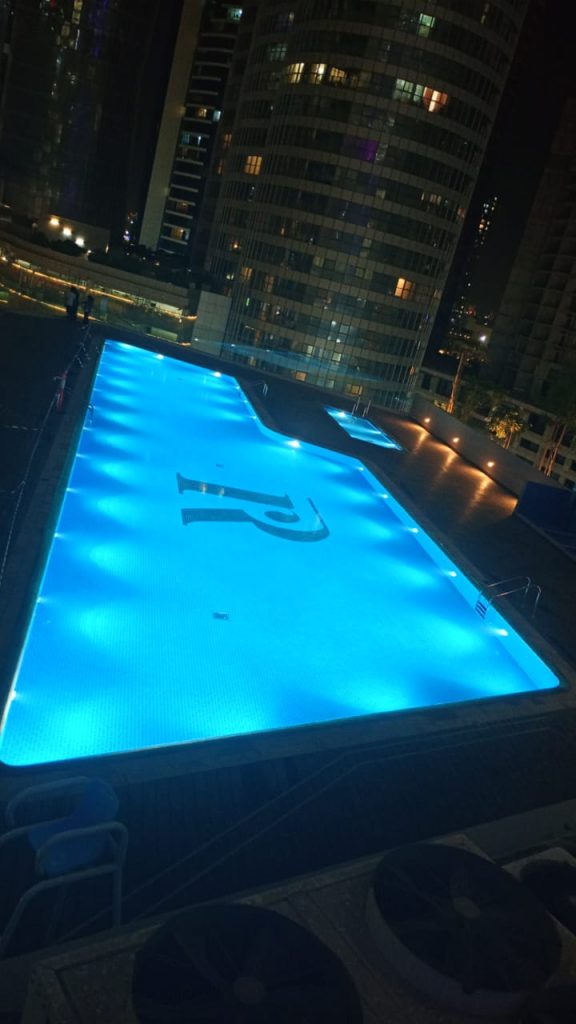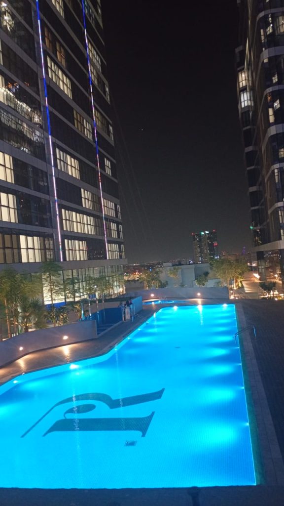 Meaisem First Tower, Dubai Production City, Dubai, features swimming pools equipped with our premium pumps, filters, dosing systems, pool fittings, transformer, lights, and HC unit, offering both performance and lasting reliability.