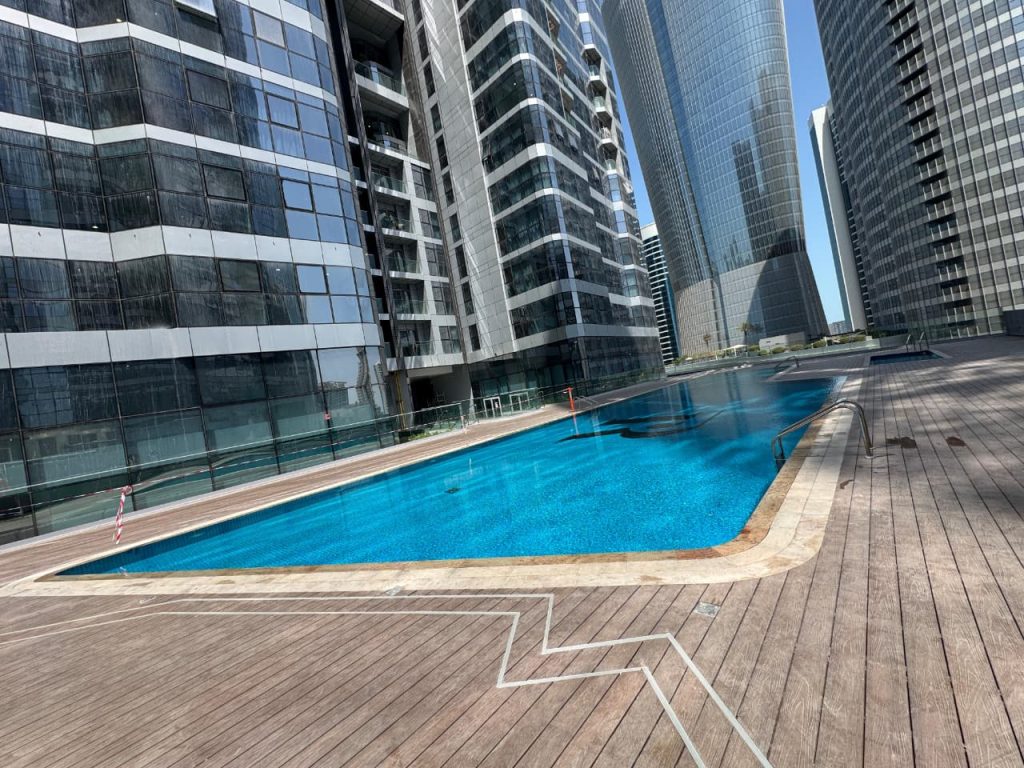 Water Edge Building1@ Yas Island Abu Dhabi. Swimming pool project Completed with Aqua Pool equipment’s and accessories.