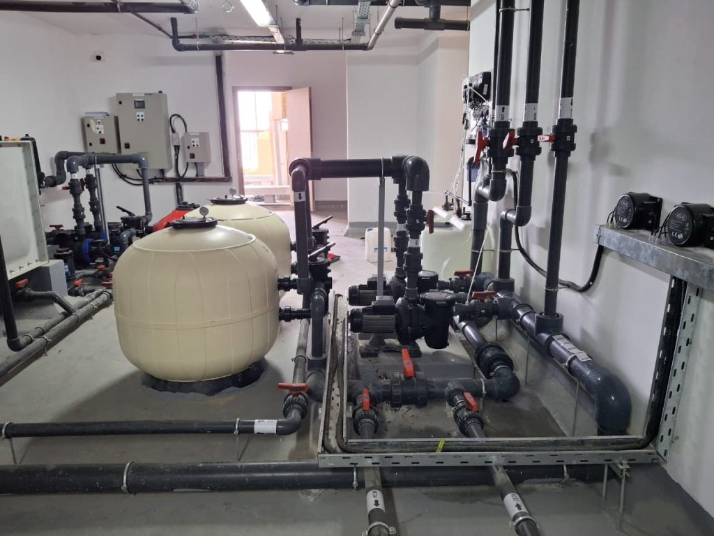 A luxury hospitality project at Corinthia Gewan Binghatti Lavender Island Hotel, Qatar. We supplied high-quality swimming pool equipment, including filters, pumps, dosing systems, and other essential components for efficient and reliable performance.